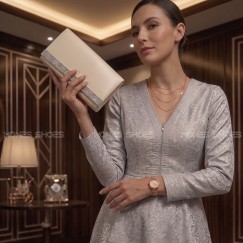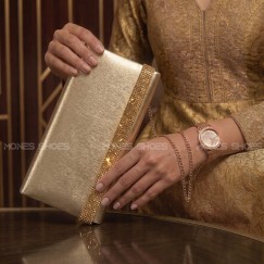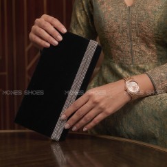 Ajoutez une touche de magie à votre garde-robe avec cette pochette d'exception. Conçue pour les femmes qui ne veulent pas passer inaperçues, elle présente une silhouette structurée et une bande horizontale ornée de strass de haute qualité. Que ce soit pour un mariage, un gala ou une soirée...