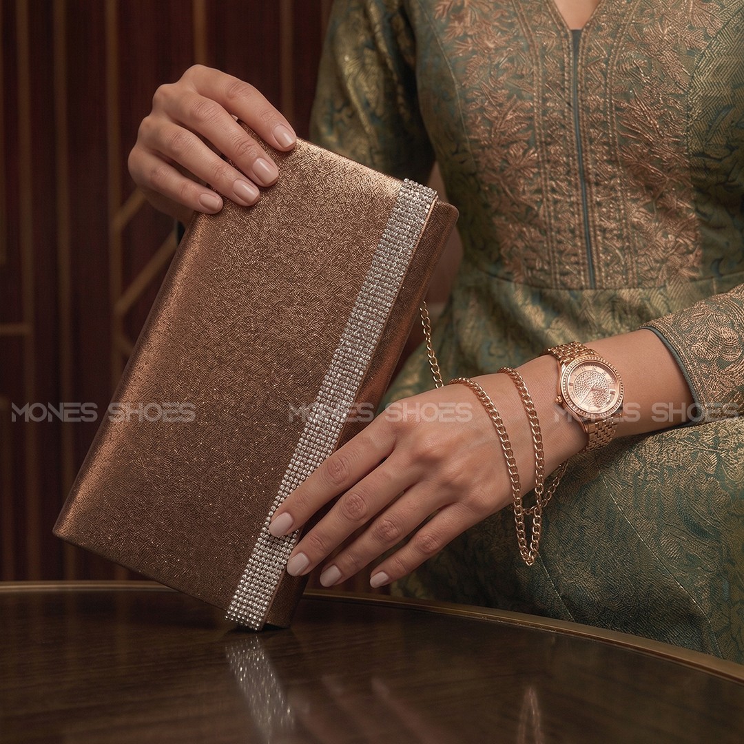Ajoutez une touche de magie à votre garde-robe avec cette pochette d'exception. Conçue pour les femmes qui ne veulent pas passer inaperçues, elle présente une silhouette structurée et une bande horizontale ornée de strass de haute qualité. Que ce soit pour un mariage, un gala ou une soirée cocktail, ce sac est la signature d'un style impeccable